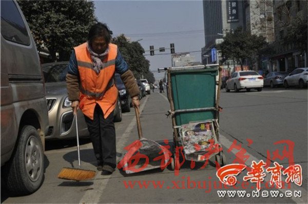 余師傅是周至縣一名保潔員,59歲的他去年12月6日正式上崗,主要負(fù)責(zé)周至縣溫泉路一段保潔區(qū)。