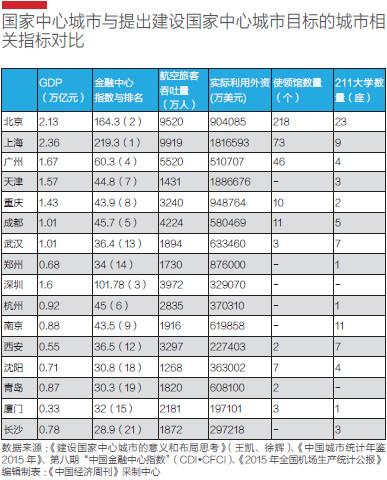 國家中心城市競爭尤為激烈,各大城市對獲得這一定位的渴望也表現(xiàn)得強烈而迫切。