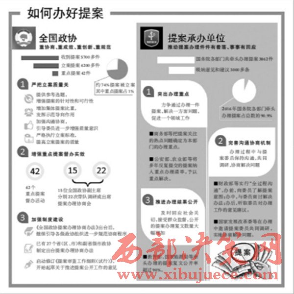 2017年2月3日召開的國務(wù)院常務(wù)會(huì)議指出,辦理好人大代表建議和政協(xié)委員提案,是政府匯聚眾智、回應(yīng)民生關(guān)切、推進(jìn)依法行政的重要體現(xiàn)。去年國務(wù)院各部門共牽頭辦理全國人大代表建議7873件、全國政協(xié)委員提案3862件,分別占總數(shù)的91.5%和90.9%,在出臺(tái)相關(guān)政策措施時(shí)吸納了3000余條意見和建議,有力推動(dòng)了政府各方面工作。
