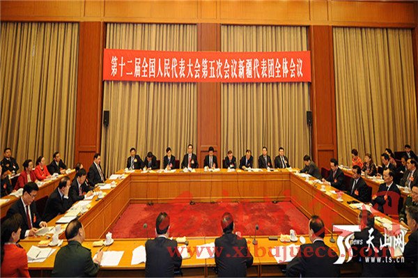 3月5日下午,出席十二屆全國人大五次會(huì)議的新疆代表團(tuán)舉行全體會(huì)議,審議政府工作報(bào)告。