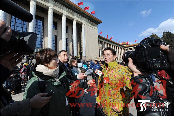 3月5日,新疆全國人大代表古麗努爾·買買提在北京人民大會(huì)堂前接受媒體采訪。