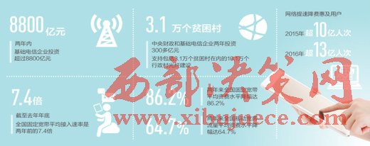 陳肇雄介紹,兩年來,工信部會同有關部委,扎實推進網(wǎng)絡提速降費相關工作落實。圍繞網(wǎng)絡提速,一是深入推進寬帶中國戰(zhàn)略。兩年內基礎電信企業(yè)投資超過8800億元,國家發(fā)改委安排中央預算內投資10億元,專項建設基金480億元,建成了全球規(guī)模最大的固定光纖和移動4G網(wǎng)絡。二是加快實施電信普遍服務。中央財政和基礎電信企業(yè)兩年投資300多億元,支持包括3.1萬個貧困村在內的10.1萬個行政村光纖建設。三是優(yōu)化互聯(lián)網(wǎng)骨干網(wǎng)網(wǎng)絡結構。擴容骨干網(wǎng)網(wǎng)間互聯(lián)帶寬1562G,新增3個互聯(lián)網(wǎng)骨干直聯(lián)點,總數(shù)達到了13個。截至2016年年底,全國固定寬帶平均接入速率達到49M,是兩年前的7.4倍。光纖寬帶用戶占比從34.1%提升到76.6%,進入全球前三位。根據(jù)中國寬帶聯(lián)盟發(fā)布的數(shù)據(jù),我國移動寬帶網(wǎng)絡用戶平均體驗速率已經從3G的3.9M提升到目前4G的11.9M。4G用戶已經達到7.7億戶,占全球4G用戶的一半以上。