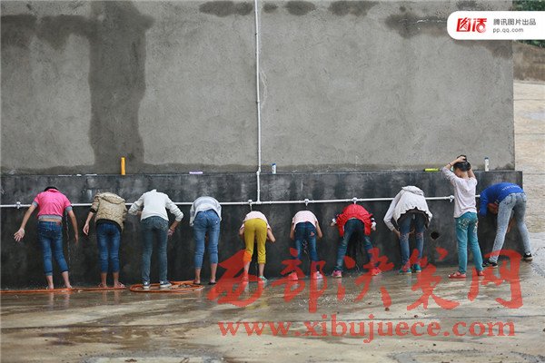 圖為2016年5月25日,湖南省隆回縣三閣司鎮(zhèn)中學(xué),是五年級至九年級的鄉(xiāng)村寄宿制學(xué)校,1600多名學(xué)生中近70%是留守兒童。室外,一群女生直接用自來水洗頭。