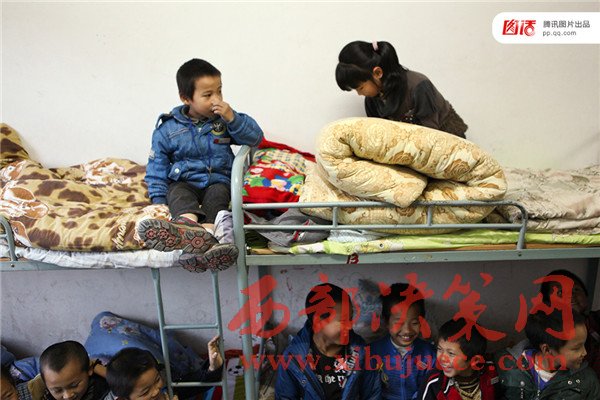 教育公益組織歌路營的數(shù)據(jù)顯示我國基礎(chǔ)教育階段寄宿制學(xué)生數(shù)量達(dá)3276萬,其中60%是留守兒童。2015年,歌路營發(fā)布了《中國農(nóng)村住校生調(diào)查報告》,在走訪了幾百所農(nóng)村寄宿校后,報告用“擠、險、臭”來形容農(nóng)村孩子糟糕的住宿環(huán)境。圖為2012年11月,浙江松陽縣大東壩鎮(zhèn)中心學(xué)校,住校的人太多床鋪緊張達(dá)不到一人一床的標(biāo)配,常常安排兩個孩子睡在一起。