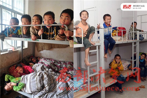 近些年,政府和民間組織相繼推進(jìn)兩免一補(bǔ)、免費(fèi)午餐工程等,加大投入改善農(nóng)村基礎(chǔ)教育環(huán)境。左圖:2014年3月28日,廣西廣西都安瑤族自治縣梅珠小學(xué)學(xué)生宿舍,一個床上擠著3、4名學(xué)生;右圖:廣西啟動為期4年的全面改善貧困義務(wù)教育薄弱學(xué)校基本辦學(xué)條件計劃,率先攻堅“大通鋪”難題,梅珠小學(xué)的孩子們告別三四人的“大通鋪”,實(shí)現(xiàn)一人一床。