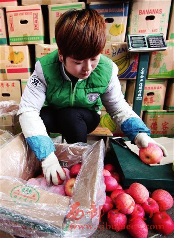 把蘋果按個(gè)頭大小、顏色深淺碼放在紙箱里,王女士每天要重復(fù)這樣的動(dòng)作幾十次。