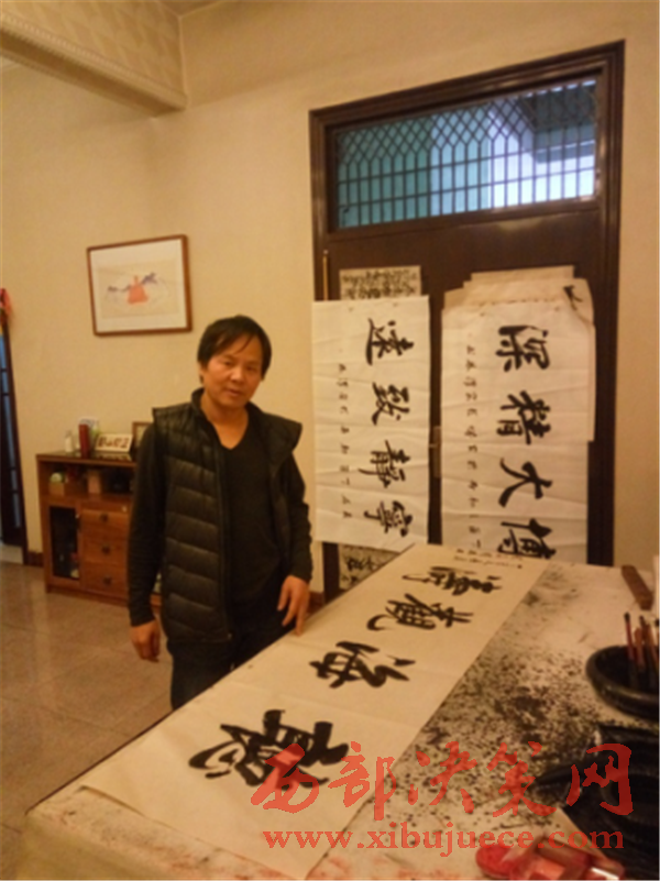 于是在今年的3月18日,經(jīng)過多次聯(lián)系我終于踏上尋訪神交已久的故人,初次看到他映入我的眼簾的是中等的身材蓄著長發(fā)三七分,方形臉,一個典型的關(guān)中漢子的形象。就是這樣一個默默無聞平凡無奇的人,當他進入蕓蕓眾生之中,尋找起來是那樣的不容易。