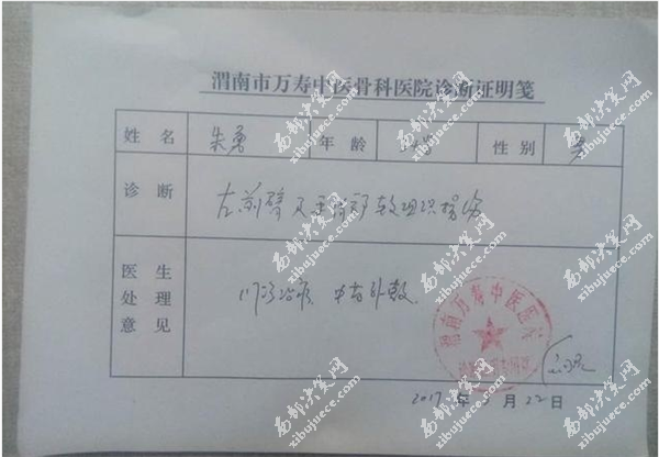 當日下午,有當?shù)孛襟w刊發(fā)了一篇《杜橋執(zhí)法人員已向學生道歉,該學生也給出情況說明》的文章。文章帖出了執(zhí)法人員受傷的照片和兩名執(zhí)法人員的診斷證明,而兩張診斷證明均出自“渭南市萬壽中醫(yī)骨科醫(yī)院”。據(jù)了解,渭南市萬壽骨科醫(yī)院系民辦醫(yī)院,難道兩位公職人員因公受傷都在民辦醫(yī)院治療嗎?