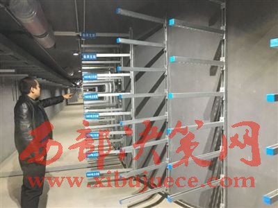 這個寬5、6米,高10多米的地下綜合管廊艙左側(cè)架設(shè)了一層層電纜支架、右側(cè)則是一條直徑約1米的藍(lán)色管道。工作人員介紹,這些支架是用來架設(shè)各類電纜線的,而那條藍(lán)色管道是排污水管。管廊頂部還設(shè)置了排氣設(shè)施,那是用來防潮的。據(jù)了解,目前,地下管廊一期主體結(jié)構(gòu)16公里已完工,學(xué)院路、高教路南段、毛勝寺路雨污水艙已投入使用。