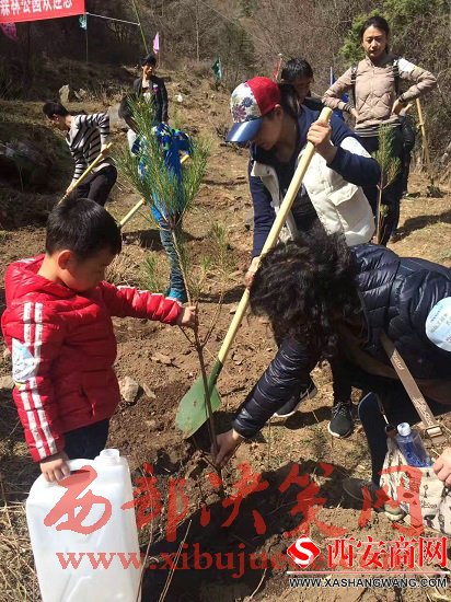 午餐過后,參加植樹的100余人在黑河國家森林公園工作人員的帶領下來到厚畛子林場植樹點,在黑河國家森林公園職工的指導下,非常認真地按照“三埋兩踩一提苗”的方法,挖樹坑、栽樹苗、培土踩實、灌溉澆水,通力合作,干勁十足。共同在黑河源頭植下200多棵油松幼苗,為秦嶺增添綠色希望林。