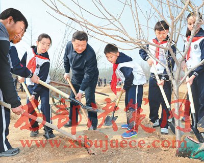 中共中央總書記、國家主席、中央軍委主席習近平29日上午在參加首都義務植樹活動時強調(diào),植樹造林,種下的既是綠色樹苗,也是祖國的美好未來。要組織全社會特別是廣大青少年通過參加植樹活動,親近自然、了解自然、保護自然,培養(yǎng)熱愛自然、珍愛生命的生態(tài)意識,學習體驗綠色發(fā)展理念,造林綠化是功在當代、利在千秋的事業(yè),要一年接著一年干,一代接著一代干,擼起袖子加油干。