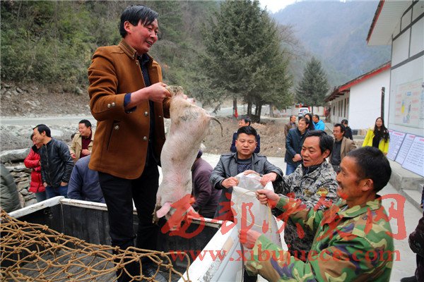 3月7日,花石村的貧困戶正在領(lǐng)取免費豬仔