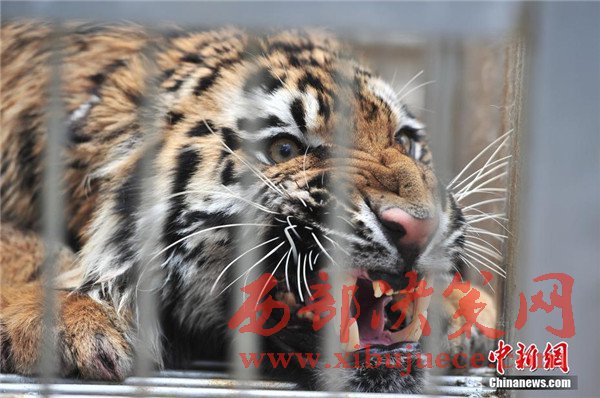 4月5日,關(guān)在籠子里的老虎。當(dāng)日,云南野生動(dòng)物園6頭老虎從繁育中心搬入散養(yǎng)區(qū),經(jīng)過(guò)一段時(shí)間的觀察適應(yīng)期后,就可以與游客見(jiàn)面。據(jù)工作人員介紹,在繁育中心人工飼養(yǎng)長(zhǎng)大的老虎到繁殖年齡后,就會(huì)搬到有更大活動(dòng)空間的散養(yǎng)區(qū)。云南野生動(dòng)物園是中國(guó)十大老虎繁殖基地之一。