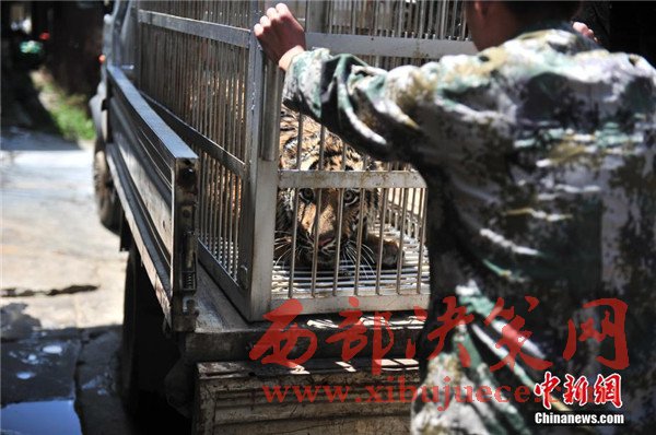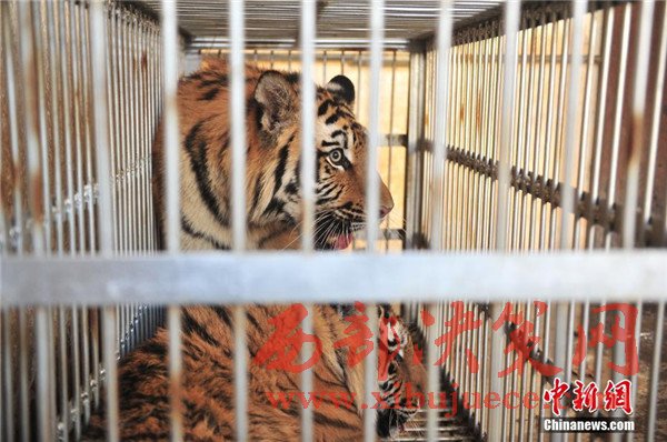 籠子里等待發(fā)車的老虎。