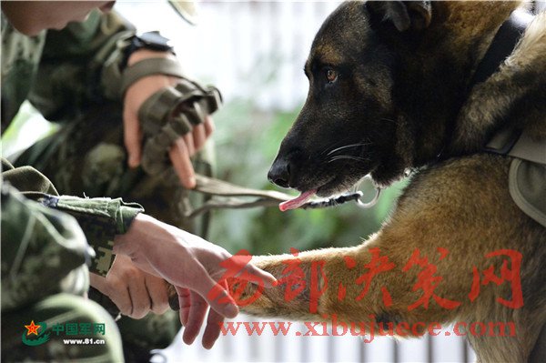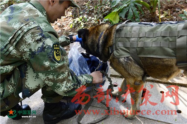“好樣的,晚上給你加菜!”下午5時10分,終于在一處枯草前停了下來,訓(xùn)導(dǎo)員上前翻開遮蓋物,臟物、衣服、手套等一包東西出現(xiàn)眼前,任務(wù)圓滿完成!據(jù)悉,“道海”從2012年服役以來,先后出色完成了緝私、緝毒、軍警聯(lián)勤等20多項機(jī)動任務(wù),多次榮立戰(zhàn)功,受到上級嘉獎表揚,是名副其實的“功勛犬”。