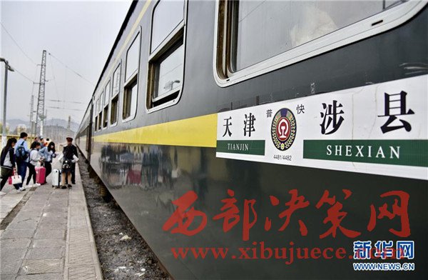 4月15日,旅客在涉縣火車站登上4482次列車。當(dāng)日,北京鐵路局河北涉縣至天津間的4482次“綠皮車”開始最后一次“旅行”。從4月16日起,全國鐵路實施新的列車運行圖,此次列車將升級更換為快速空調(diào)列車,運營多年的該線路綠皮火車將告別鐵路舞臺。