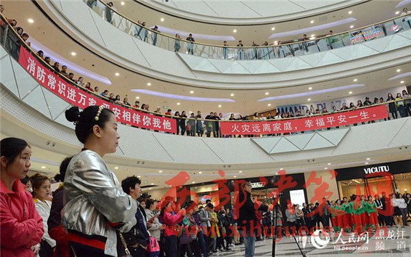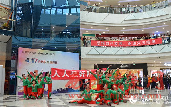 4月17日上午,在哈西萬達(dá)廣場以小虎隊經(jīng)典歌曲《愛》為背景音樂的舞蹈拉開了哈爾濱市消防支隊南崗大隊2017年“4·17”消防宣傳日活動的序幕。舞蹈的表演者全部為南崗大隊的消防官兵,歡快的樂曲和官兵們整齊的舞蹈動作吸引了市民紛紛駐足觀看宣傳活動。