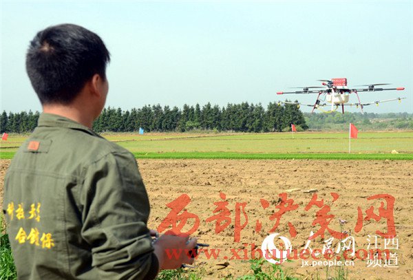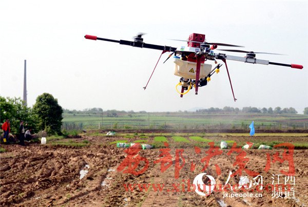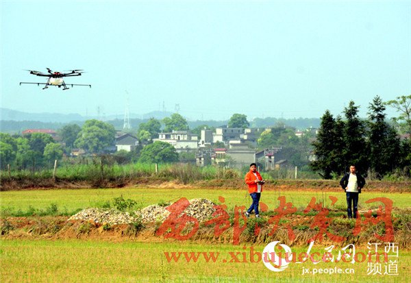 4月18日,江西省奉新縣宋埠鎮(zhèn)橋頭村奉新縣建華農(nóng)機合作社的稻田上空,數(shù)架無人機正在“嗡嗡”作業(yè),農(nóng)技員正在展示植保無人機噴灑農(nóng)藥的功能。