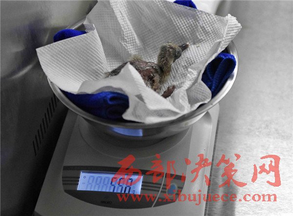 4月19日,工作人員在給朱鹮雛鳥(niǎo)稱(chēng)體重。