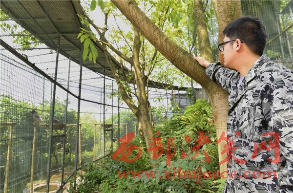4月19日,工作人員在觀測(cè)朱鹮室外活動(dòng)情況。
