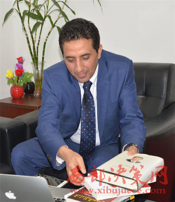 也門商人哈達德介紹他平時閱讀的中國題材書籍。
