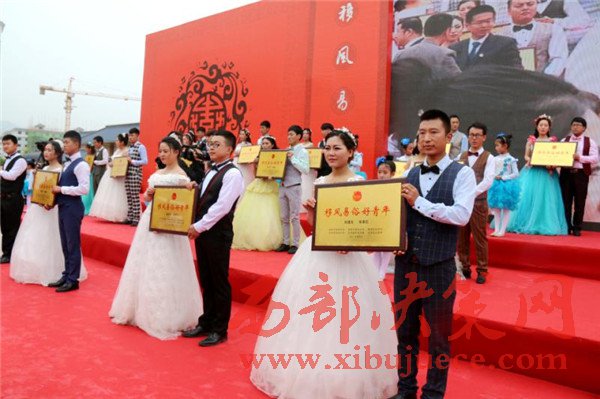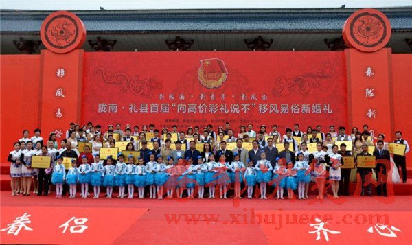 5月7日,甘肅隴南禮縣秦文化廣場上人潮如海,喜氣洋洋。倍受社會關注的隴南市首屆“向高價彩禮說不”移風易俗新婚禮在這里隆重舉行。來自禮縣各鄉(xiāng)鎮(zhèn)精準扶貧戶中的30對新人以隆重儉樸的新婚儀式喜結(jié)連理,見證了彼此的愛情。