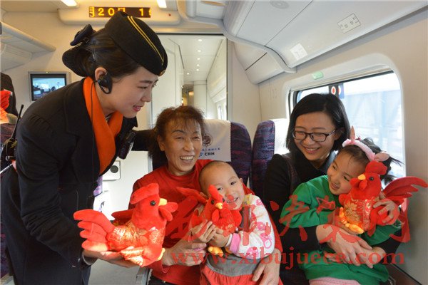 高鐵乘務員為小旅客送上節(jié)日吉祥物