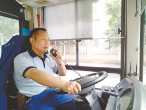 “以前報(bào)站經(jīng)常是扯著嗓子喊,每天嗓子都要‘冒煙’?,F(xiàn)在有公交車自動(dòng)播報(bào)系統(tǒng),我就拿著話筒喊。”劉師傅說,他現(xiàn)在每天開車跑3趟,每趟至少要喝一個(gè)8磅水壺裝的水,至少上一次廁所。