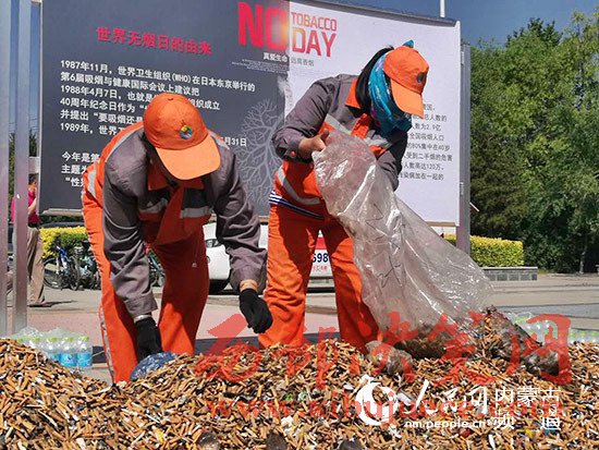 記者看到,堆在廣場(chǎng)上的煙頭之多讓人觸目驚心。據(jù)呼和浩特市鄂爾多斯東街三級(jí)路長(zhǎng)王順清介紹說(shuō),這些煙頭是呼和浩特市賽罕區(qū)、新城區(qū)、回民區(qū)三個(gè)區(qū)的4000多位環(huán)衛(wèi)工人一天所撿的煙頭有上萬(wàn)個(gè),公交站牌、紅綠燈十字路口和柵欄下面是煙頭比較多的地方,一般綠化帶里的煙頭是最難清理的,尤其是車窗拋物很難杜絕,對(duì)環(huán)境造成了很大的影響。