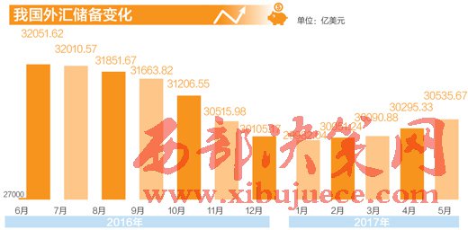 中國人民銀行最新公布的數據顯示,5月末,我國外匯儲備規(guī)模為30536億美元,較4月末小幅上升240億美元,增幅0.8%,連續(xù)第四個月出現回升。今年1月,外匯儲備跌破3萬億美元,此后開始連續(xù)回升。