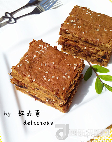 6.撒一層白芝麻。預(yù)熱烤箱,上下火150度45~50分鐘,烤好以后稍微放涼,撕去錫紙即可。
