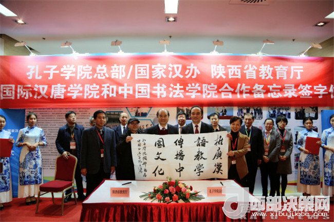 為更好的傳播中國(guó)傳統(tǒng)文化、推進(jìn)教育資源共享,實(shí)現(xiàn)與孔子學(xué)院內(nèi)外互補(bǔ)的中國(guó)文化交流傳播格局。12日下午,孔子學(xué)院總部、國(guó)家漢辦、陜西省教育廳舉行了共建中國(guó)書法學(xué)院和國(guó)際漢唐學(xué)院的合作備忘錄簽字儀式。備忘錄由孔子學(xué)院總部、國(guó)家漢辦副總干事趙國(guó)成先生和陜西省教育廳副廳長(zhǎng)劉建林先生共同簽署。簽字儀式由陜西省教育廳國(guó)際交流處副處長(zhǎng)文通主持,國(guó)家漢辦和陜西省教育廳有關(guān)部門的領(lǐng)導(dǎo)以及我校黨委副書記、校長(zhǎng)雷亞萍,西北大學(xué)副書記、副校長(zhǎng)賈明德,中國(guó)書法學(xué)院院長(zhǎng)于唯德,西安工業(yè)大學(xué)、西北大學(xué)有關(guān)部門的領(lǐng)導(dǎo)和師生代表參加了簽字儀式。