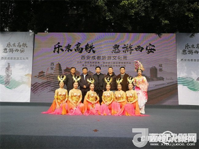 2017年12月13-17日,由西安市旅游發(fā)展委員會、西安曲江新區(qū)管理委員會主辦,西安曲江文化旅游股份有限公司承辦的“樂乘高鐵·惠游西安”西安5折歡游季西成高鐵系列路演活動,分別在廣元利州廣場、綿陽鐵牛廣場、成都寬窄巷子東廣場、重慶觀音橋廣場等地精彩上演。巡演向四川、重慶的父老鄉(xiāng)親們介紹了西安豐富的旅游資源,展現(xiàn)了千年古都地靈人杰的文化底蘊和生氣盎然的城市魅力。四城路演活動共吸引了近五萬當?shù)厥忻裼慰汀?