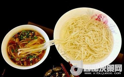 戶縣擺湯面是在具有悠久歷史的關(guān)中臊子面的基礎(chǔ)上,創(chuàng)新而成的一種面食后起之秀。戶縣當(dāng)?shù)赜校?ldquo;下到鍋里蓮花轉(zhuǎn),撈到碗里疊絲線,吃到口里嚼不斷,咽到肚里香半年”的歌謠,專門夸贊擺湯面的美味。