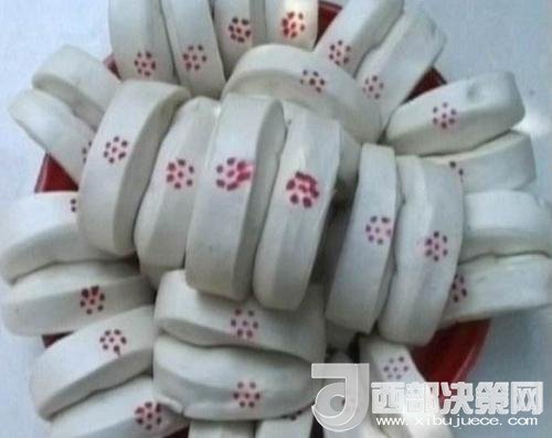 小吃本名“早告饃”,后來由于在饃上染花、放棗,所以又叫“棗糕饃”。棗糕饃用黃酒渣子做酵引,按季節(jié)用不同溫度的水和成面團(tuán),成型后再餳發(fā)半小時(shí)左右,用鐵鍋旺火蒸制而成。棗糕饃宜大量制作,用繩結(jié)串,吃時(shí)再蒸。棗糕饃不兌堿,色白質(zhì)軟,略帶甜味,是待客、饋贈佳品。