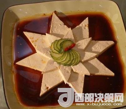 上元觀是城固縣的一個(gè)鎮(zhèn)。當(dāng)?shù)厝艘詢?yōu)質(zhì)黃豆為原料,以漿水(即鹵水)點(diǎn)制豆腐;壓榨后將豆腐切成一寸見方,恒溫發(fā)酵;以食鹽、花椒、大香、紅叩、桂皮、良姜、砂仁等30多種調(diào)味品浸拌腌漬后晾干;再用大曲酒、辣醬調(diào)制混合入壇密封。壇體埋入地下二次發(fā)酵,存放三年而成。豆腐外現(xiàn)棗紅色,內(nèi)呈黃色,松軟、細(xì)膩、咸辣不出頭、清香爽口。