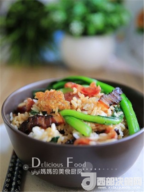 大米兩量杯、臘肉1塊、廣式臘肉3根、菜心1小把、植物油適量。