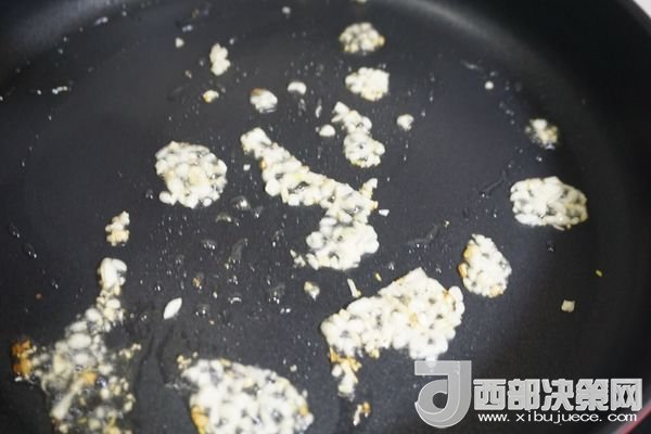 5、炸好的鵪鶉蛋放在廚房用紙上吸油。坐熱油鍋,少許油加蒜末爆香。
