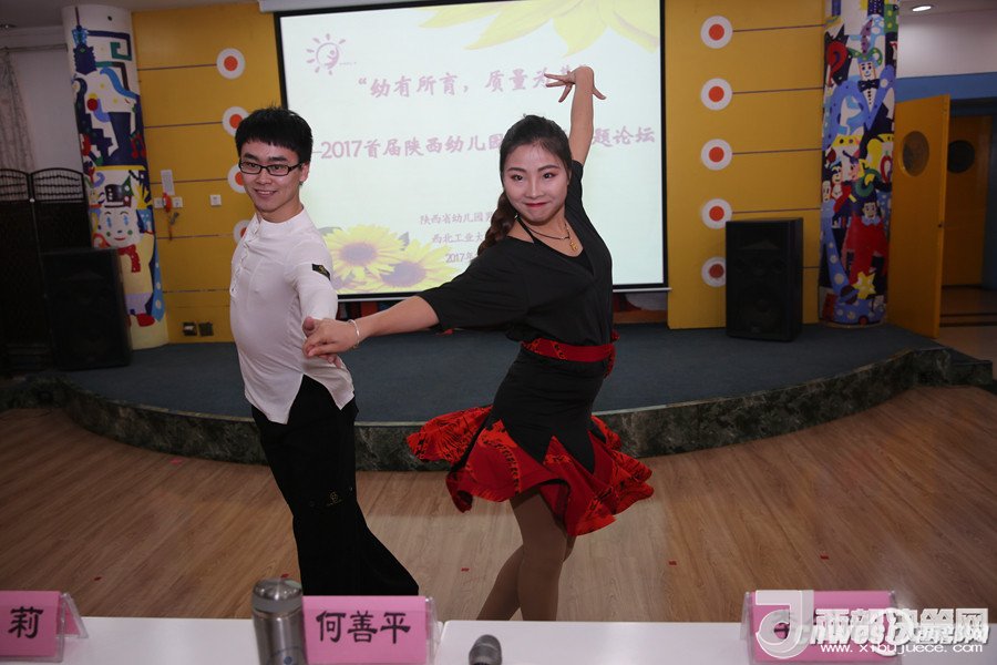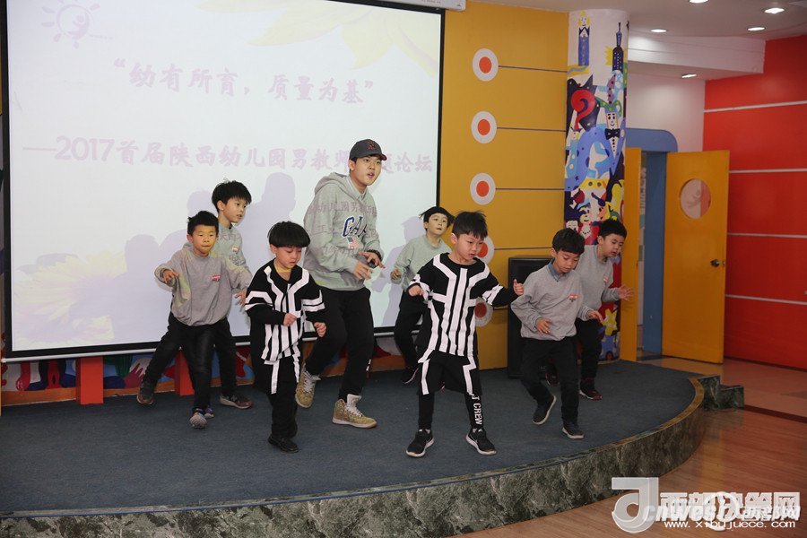 論壇上,西安市浐灞第二幼兒園的謝曉鳴和孩子們帶來的街舞表演點(diǎn)燃了全場,讓大家感受到幼兒園男教師的熱情和激情;陜西師范大學(xué)幼兒園的韓凱帶來的鋼琴演奏《一壺美酒》傳達(dá)了深切的情感,讓人回味無窮;西航天鼎保育院的趙棟用挺拔健美的身姿表演的拉丁串燒,展現(xiàn)了生命自信的力量;電信十所幼兒園的孫博一只單簧管演奏,吹出了男教師細(xì)致柔情的一面;西安市雁塔區(qū)第一幼兒園的陳曉峰演唱的《祖國,慈祥的母親》讓我們領(lǐng)略了幼兒園男教師專業(yè)的唱功和對職業(yè)的自信;西北工業(yè)大學(xué)幼兒園教師董樂帶領(lǐng)小朋友展示了動感的啦啦操和籃球活動,場上的小運(yùn)動員自信的運(yùn)球、上籃、投球,矯健的身姿,專注的表情,默契的配合,感染著在場的每一位教師;西安市第五保育院肖波和陜西睿星體育一群陽光帥氣的男教師組織的趣味體能游戲?qū)⒒顒託夥胀葡蛄烁叱薄?/p>