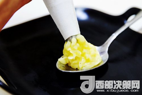 調(diào)好的土豆泥裝進裱花袋,擠出成型。