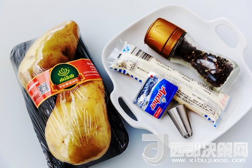 食材:土豆、濃縮雞汁、黃油、藍莓醬、黑胡椒。