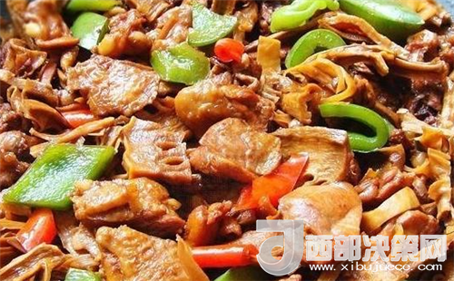 8、等筍干軟爛時(shí),大火收汁,加青紅椒塊,最后加鹽調(diào)味。