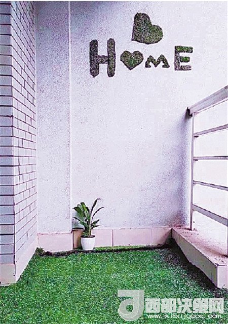 要說最有特色的,就是寢室陽臺上設置了“高爾夫草坪”。青綠色的草皮地板,柔軟清新,別具一格。