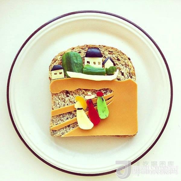 2012年,Ida Skivenes在網(wǎng)上看到一張用兩片土司擺出熊和狐貍造型的照片。受到啟發(fā)的她決定開(kāi)始自己嘗試這種創(chuàng)意美食攝影。Skivenes用不同顏色的盤子作為背景,將各種食材擺放其上,組成一幅幅有趣畫面,然后用手機(jī)拍下來(lái)并分享在Instagram上。