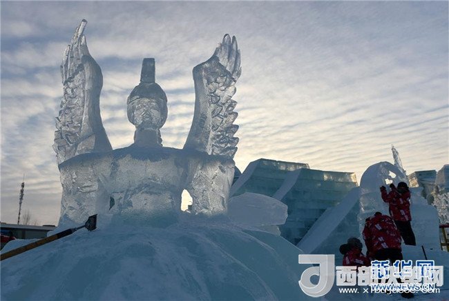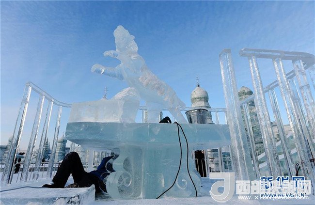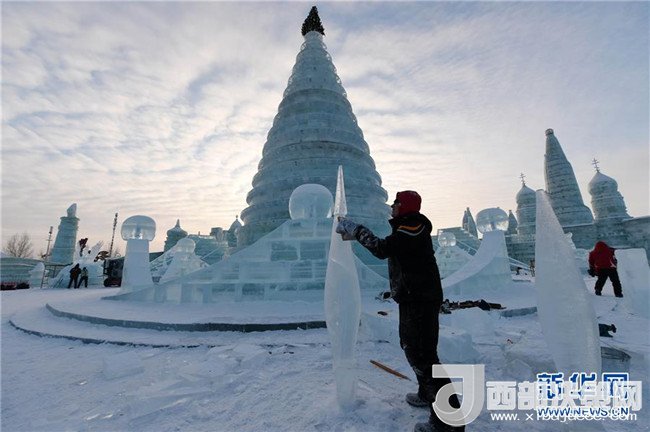 1月3日,在哈爾濱冰雪大世界園區(qū),冰雕選手在進(jìn)行創(chuàng)作。當(dāng)日,在哈爾濱冰雪大世界園區(qū)內(nèi)舉行的國(guó)際組合冰冰雕比賽進(jìn)入第四天。經(jīng)過(guò)來(lái)自世界各地的冰雕選手悉心雕琢,一塊塊冰出落成精美的藝術(shù)作品,仿佛晶瑩剔透的出“冰”芙蓉。(記者 王建威 攝)