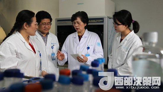 李蘭娟院士與項目組成員在討論。圖中左三為李蘭娟院士-盧紹慶攝