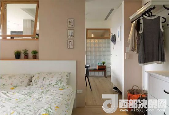 看得出臥室在哪兒嗎?沒錯(cuò),臥室就在餐區(qū)和廚房的一側(cè),墻上的窗戶同樣也是為了增加采光和空氣的流通。