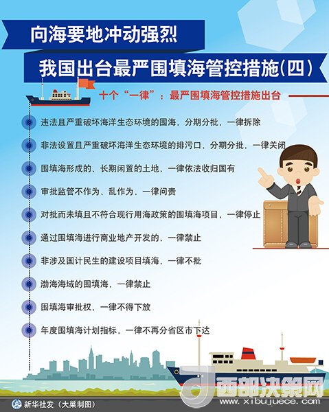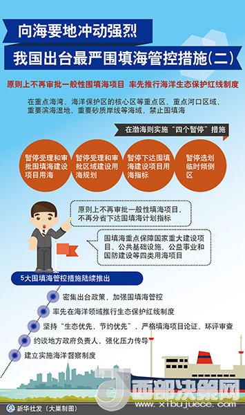 ?。保啡?,國(guó)家海洋局舉行圍填海情況新聞發(fā)布會(huì),國(guó)家海洋局副局長(zhǎng)林山青宣布,結(jié)合圍填海督察整改工作,國(guó)家海洋局將采取“史上最嚴(yán)圍填海管控措施”,以期保護(hù)優(yōu)先、集約利用的用海理念牢固確立,使海域開發(fā)利用得到可持續(xù)發(fā)展。