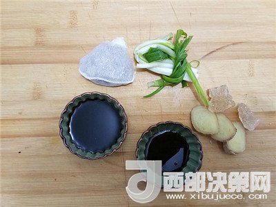 輔料:老抽1茶匙 生抽3茶匙 燉肉料包1個 香蔥適量 生姜10克 冰糖15克 食鹽適量 料酒適量