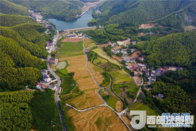 俯瞰浙江省安吉縣上墅鄉(xiāng)劉家塘村的美麗鄉(xiāng)村景色(2017年6月8日攝)。安吉縣大力開(kāi)展美麗鄉(xiāng)村建設(shè),讓青山綠水成為當(dāng)?shù)?ldquo;金名片”。記者 張鋮 攝